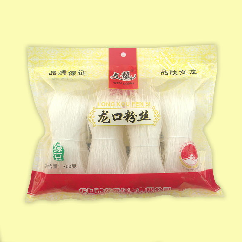 文龍龍口粉絲有豐富的營養價值,可以和多種食品搭配食用,可葷可素,口感清脆,被譽為“傳統美食”。材料均是人工甄別,精挑細選,色澤青綠,經過多種安全檢測,確保食品安全。得天獨厚的生長環境,陽光雨露細潤下的自然生長,真正來自大自然的美食佳品、